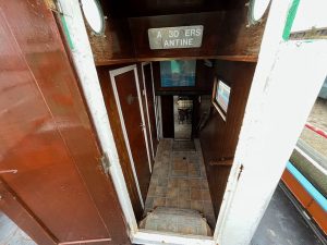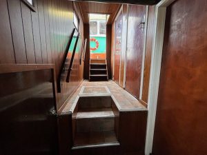 Steilsteven, passagiersscheepje 'Janny', bj. 1923, afm. 23.51 x 3.80 x 1.17/0.90m. DAF 615, 120 PK. Schip is v.v. een ruime brug, gezellige salon/kantine met ruim kombuis, hal met toilet en 2 ruime opbergkasten. Leuk detail is het achteronder daar is de originele schipperswoning nog aanwezig. In de Janny zit veel RVS verwerkt maar ze heeft wel wat liefde en aandacht nodig > een schilderbeurt fleurt de boel alweer aardig op. Het schip was vroeger een vrachtscheepje voor Frico Friesland.