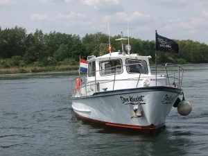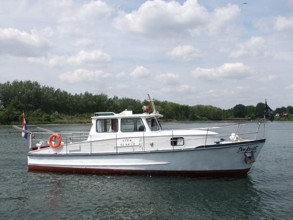 Prijs verlaagd, zeer leuke ex Politieboot 'Liza', bj. 1975, afm. 11.50 x 3.60 x 1.40m. Mercedes 256 PK. Groot achterdek, brug met zitje en uitzicht over het water, vooronder v.v. kombuis, 2 pers. bed en toilet. RVS reling en RVS davits voor bijboot. Goed onderhouden geheel!