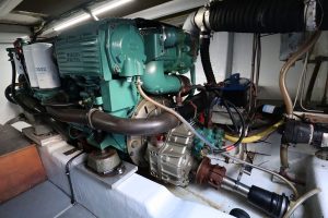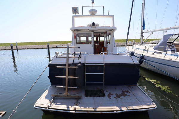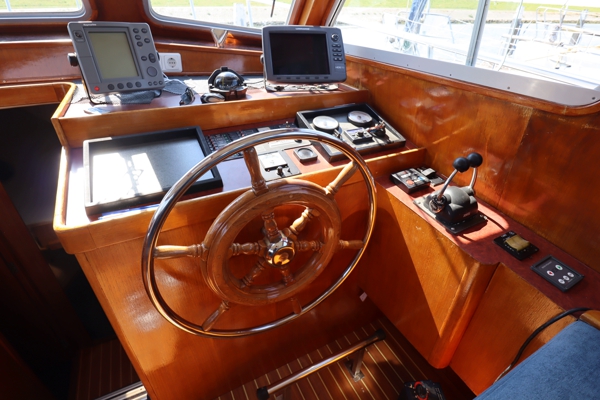 Cygnus 35 - TX25, veelzijdig schip, zeegaand jacht, visboot, sportduiken, passagiersschip, bj. 1998, afm. 10.80 x 3.60 x 1.10m. 2 x Volvo Penta 300 PK, weing draaiuren na revisie. Groot achterdek v.v. zwemplateau en duiktrap met ingang tot de ruime brug, schitterend jachtinterieur, met rondzit en uitzicht over het water, mooi kombuis met kookcomfort en oven met toegang tot de overzichtelijke, volledige uitgeruste, cockpit/brug. Vanuit de brug met de trap naar beneden bereiken we het sanitair en de slaapgedeeltes. De machinekamer is, net als het gehele schip, zeer netjes en goed onderhouden.
